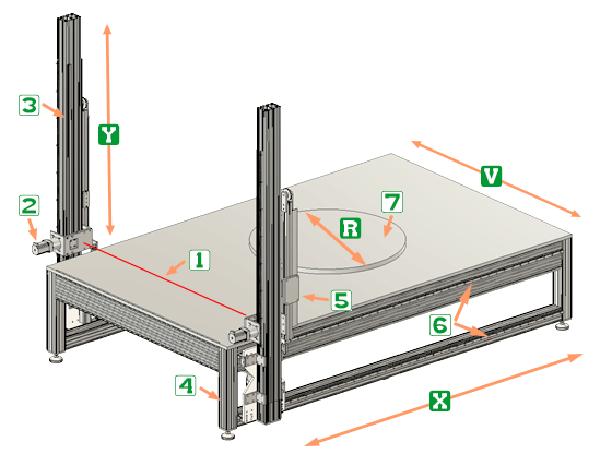 Robustná otvorená rámová konštrukcia s lineárnymi vedením, hrebeňovým pohonom a vysokokrútiacimi motormi s planétovými prevodovkami.