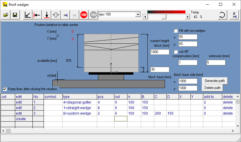 Softvér poskytuje intuitívne grafické rozhranie na podporu automatizovanej výroby strešných izolačných prvkov na vytváranie spádu. Z prehľadného zoznamu šablón je možné v priebehu niekoľkých sekúnd vybrať požadované prvky. Stačí zadať počet kusov a potrebné bočné rozmery (výšky rohov) a systém je okamžite pripravený zostaviť výrobný zoznam. Softvér automaticky sleduje, koľko prvkov už bolo vyrobených, a včas upozorní obsluhu, keď je potrebná výmena EPS bloku – výroba tak zostáva plynulá a bez prerušení.
